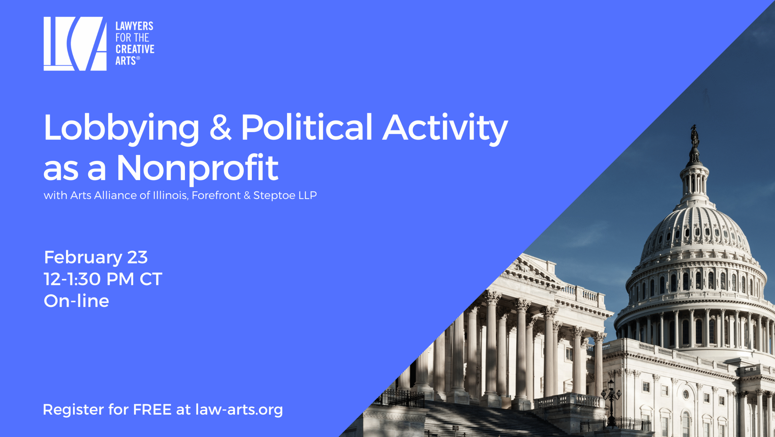 As a nonprofit, your organization has powerful opportunities to advocate for change—but it’s essential to understand the rules, limitations, and best practices for lobbying and political activity. In support of the Arts Alliance of Illinois’ Capital Day, join us for a practical and actionable session on how 501(c)(3) organizations can engage in advocacy while staying compliance with federal, state, and local regulations. You’ll gain clarity on where advocacy crosses into lobbying or political activity, what restrictions apply when communicating with government officials, and how to navigate activities like speaking with elected officials or hosting candidate forums. We’ll also break down what the IRS considers political activity and what is allowed under nonprofit tax laws. Don’t miss this opportunity to learn how your organization can effectively engage in policy discussions while maintaining compliance. About the Speaker: Holly Ambuehl, Director, Policy and Government Affairs at Forefront Adie Olson, Partner at Steptoe LLP Andrew Schneider, Senior Director of Government Affairs at the Arts Alliance of Illinois About Forefront: Forefront is Illinois’ statewide association representing nonprofits and grantmakers, as well as their advisors and allies. For fifty years (founded in 1974), Forefront has served as a trusted resource and leader committed to educating, unifying, and mobilizing the sector in Illinois. Learn more at https://myforefront.org/. About Steptoe LLP: In more than 100 years of practice, Steptoe has earned an international reputation for vigorous representation of clients before governmental agencies, successful advocacy in litigation and arbitration, and creative and practical advice in structuring business transactions. Learn more at https://www.steptoe.com/en/. About Arts Alliance of Illinois: Arts Alliance Illinois fights for arts resources and policies that benefit our members and all Illinois residents. As the only statewide, multidisciplinary organization concentrated on the strength of arts and culture, the Alliance takes on challenges that no single organization or artist can face alone. With 25,000 active subscribers and hundreds of members, the Alliance connects the people and ideas that are shaping the future of the creative sector. Learn more at https://artsalliance.org/. Holly Ambuehl, Director, Policy and Government Affairs at Forefront Adie Olson, Partner at Steptoe LLP Andrew Schneider, Senior Director of Government Affairs at the Arts Alliance of Illinois