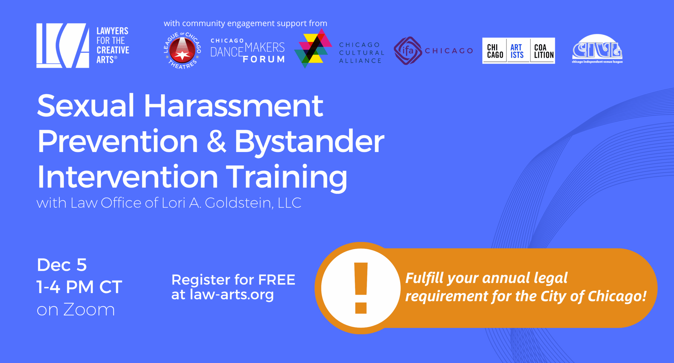 By submitting this form, you are consenting to receive marketing emails from: Lawyers for the Creative Arts, 161 N Clark St., Suite 4200, Chicago, , IL, 60601, US, http://www.law-arts.org. You can revoke your consent to receive emails at any time by using the SafeUnsubscribe® link, found at the bottom of every email.Emails are serviced by Constant Contact.